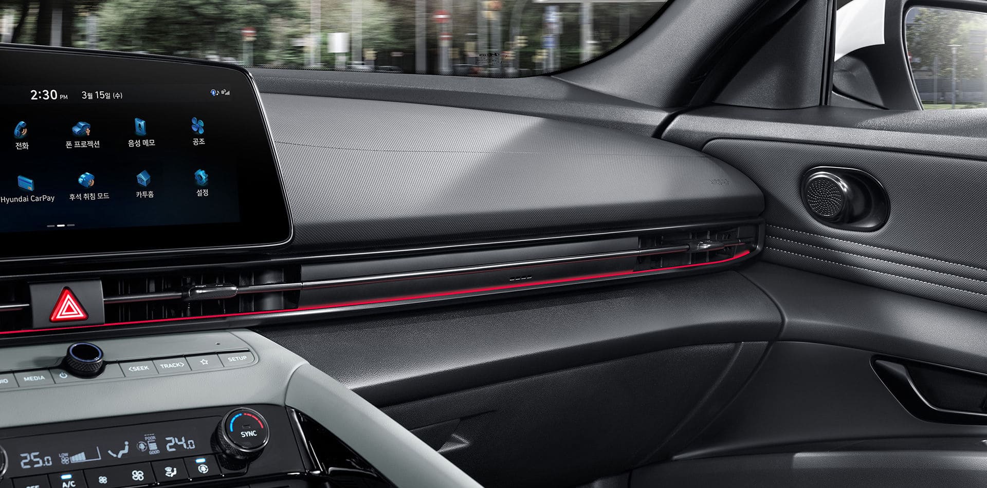 N Line 전용 도어 센터트림 레드 스티치 / 블랙 헤드라이닝